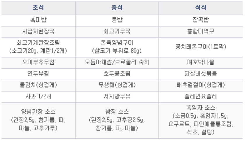 이를 반영한 실제 식단입니다. 참고해주세요.