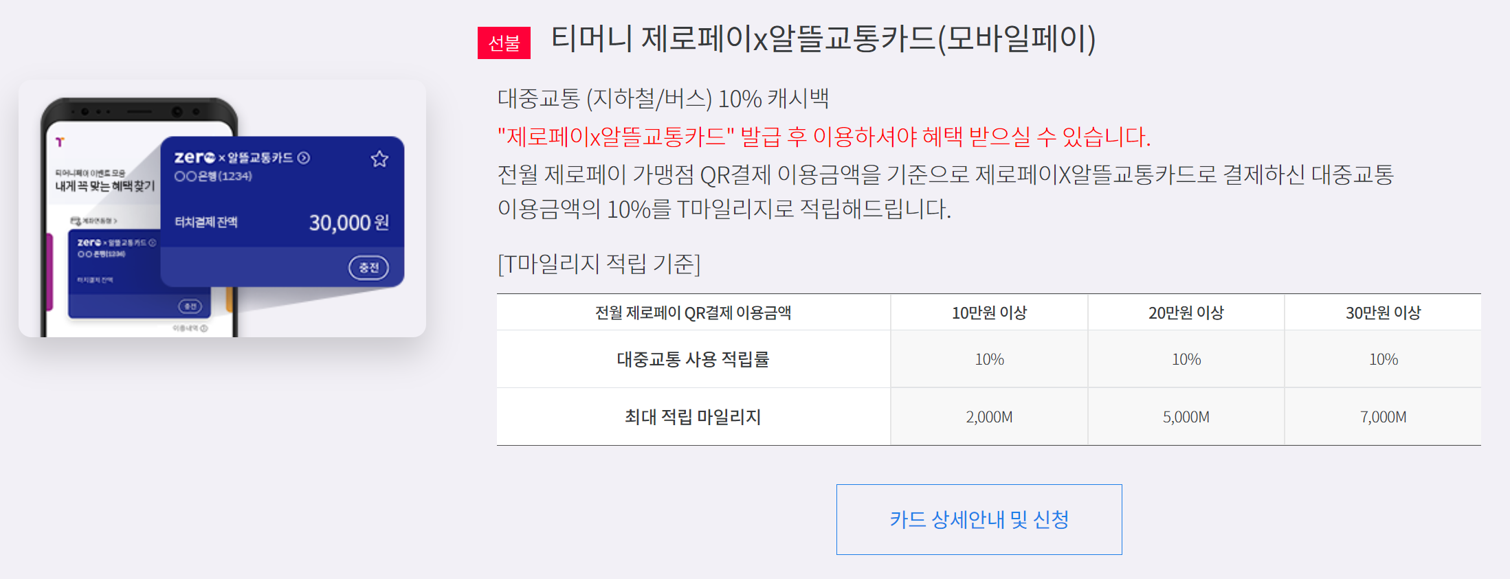 아울러 카드사의 추가 할인 혜택을 포함하여 대중교통비를 최대 30%까지 절감할 수 있는 교통카드입니다.