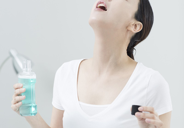 시중에 파는 가글액 사용하되, 알코올이 없는 가글액을 사용하세요.