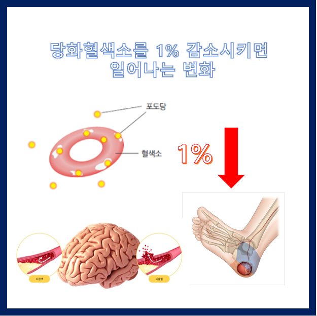 당화혈색소를 1% 감소시키면, 가장 많이 줄어드는 것이 말초혈관 질환이었습니다.