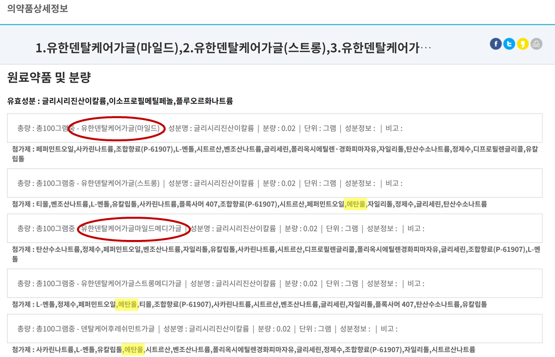 여기에는 나와있지 않지만, 유한 덴탈케어가글 미즈도 있습니다.
