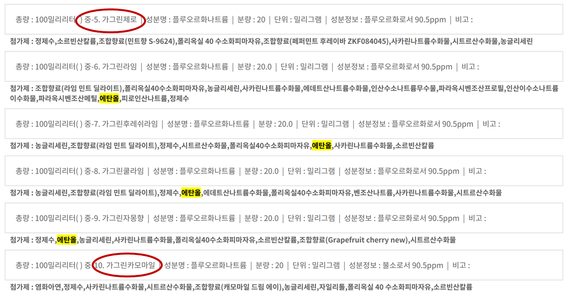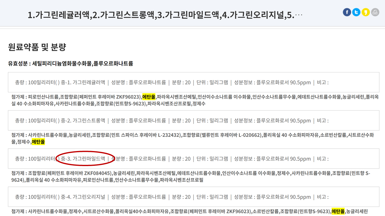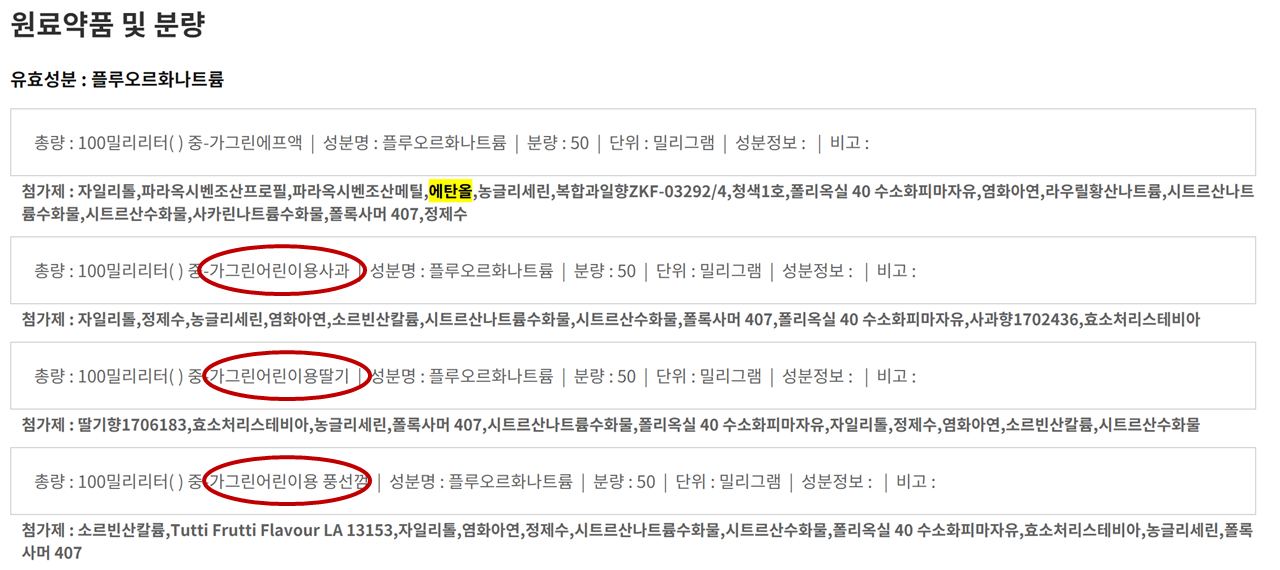 가그린 키즈 라인도 있어서 그것도 의약품 안전나라에 검색해보았는데요.