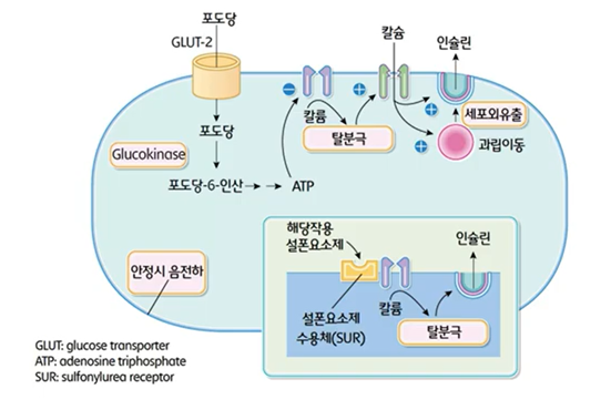 설폰 요소제는 췌장 베타세포에서 인슐린 분비를 직접 촉진합니다.